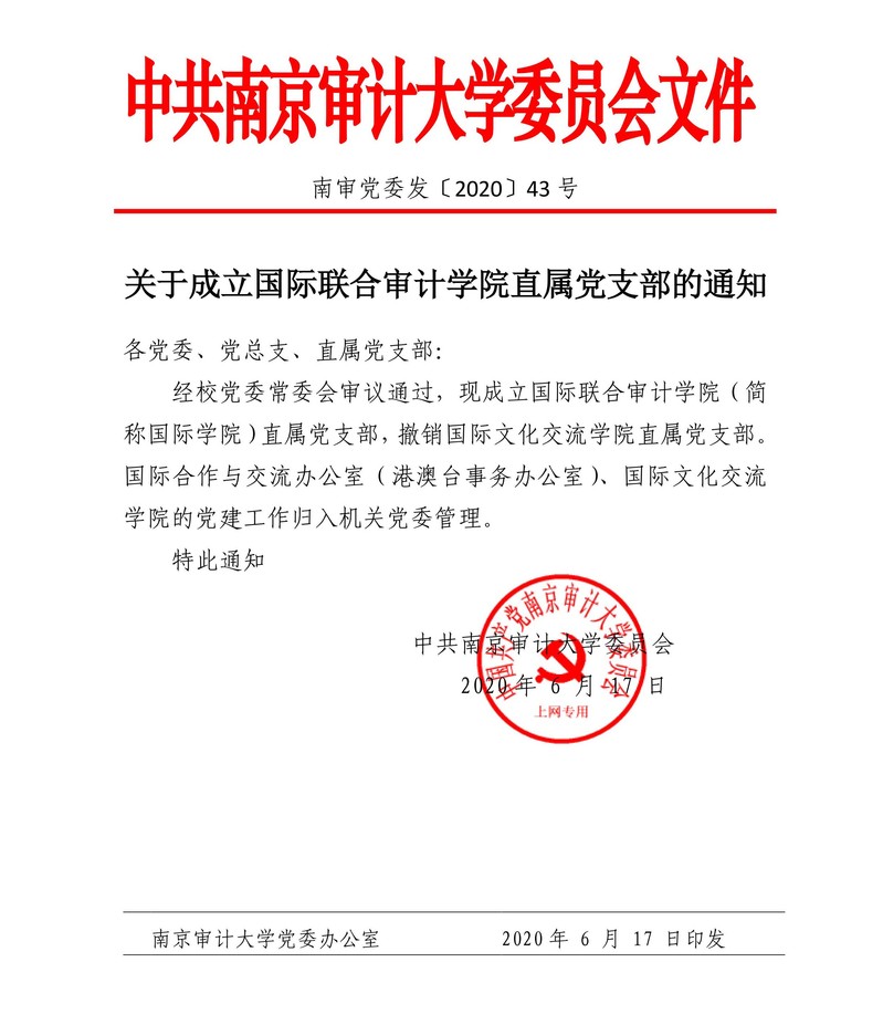 XC体育国际联合审计公司直属党支部成立文件