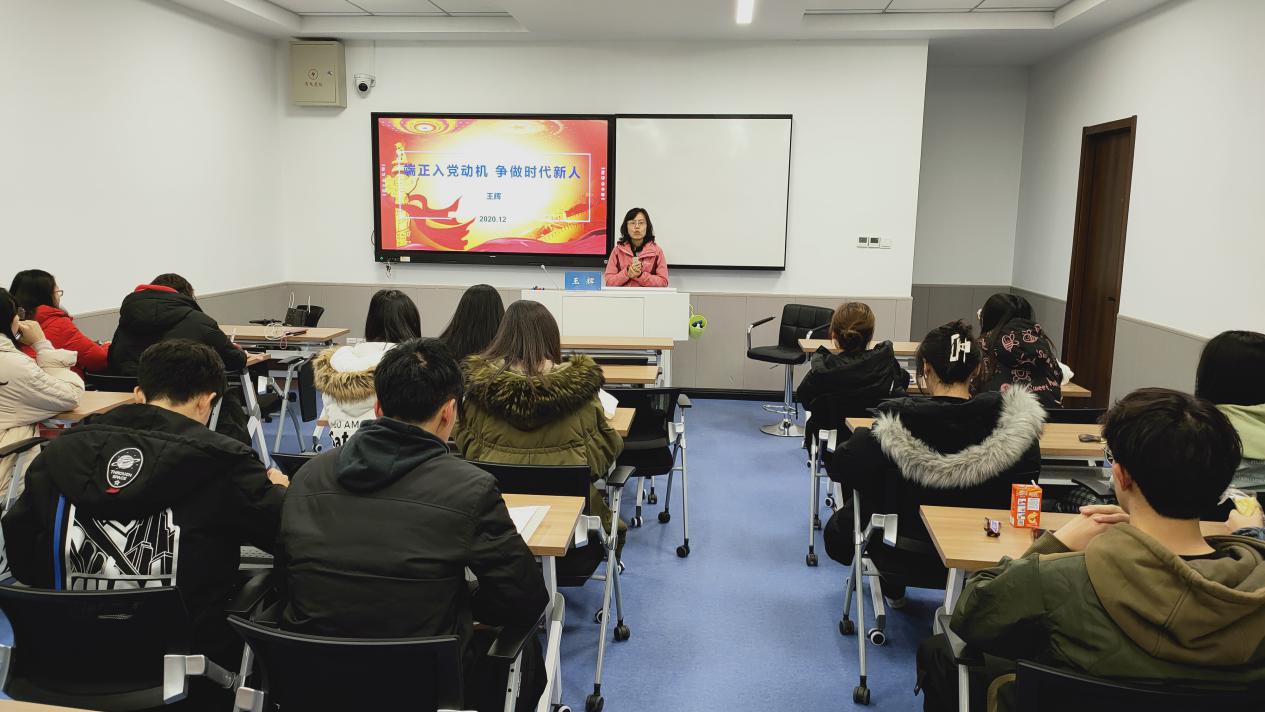 最后,王辉提醒同学们端正入党动机是一辈子的事情,作为一名入党积极分子,要从自身做起,从小事做起,时刻注意自己的言行举止,在学习、员工工作、社会实践、文体活动和日常生活中要起到先锋模范作用,真正提高自己的思想政治觉悟,做一名时代新人。