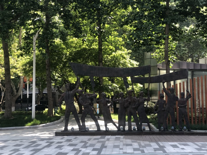 从中央饭店和总统府门前走过,同学们来到了梅园新村纪念馆,参观了中共代表团办事处旧址、周恩来铜像等近现代历史遗迹及革命纪念建筑物。
