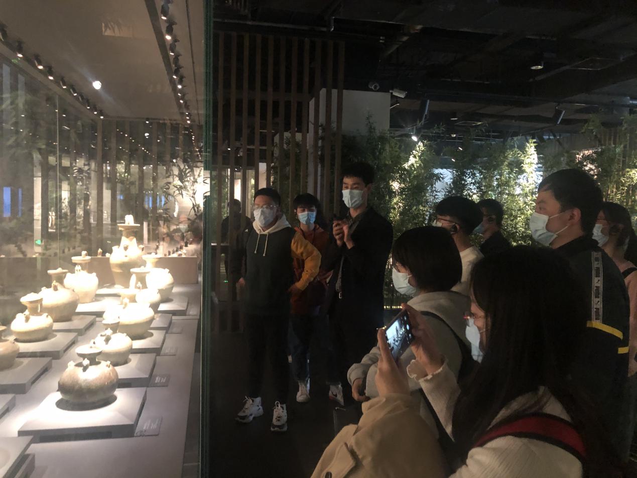 在博物馆内,同学们还细细端详了被称为“青瓷之王”的“青瓷莲花尊”。这件青瓷器在中国南北朝时期同类器物中最大,也最为精美。它通体的莲花装饰彰显了佛教艺术在南北朝时期的盛行。