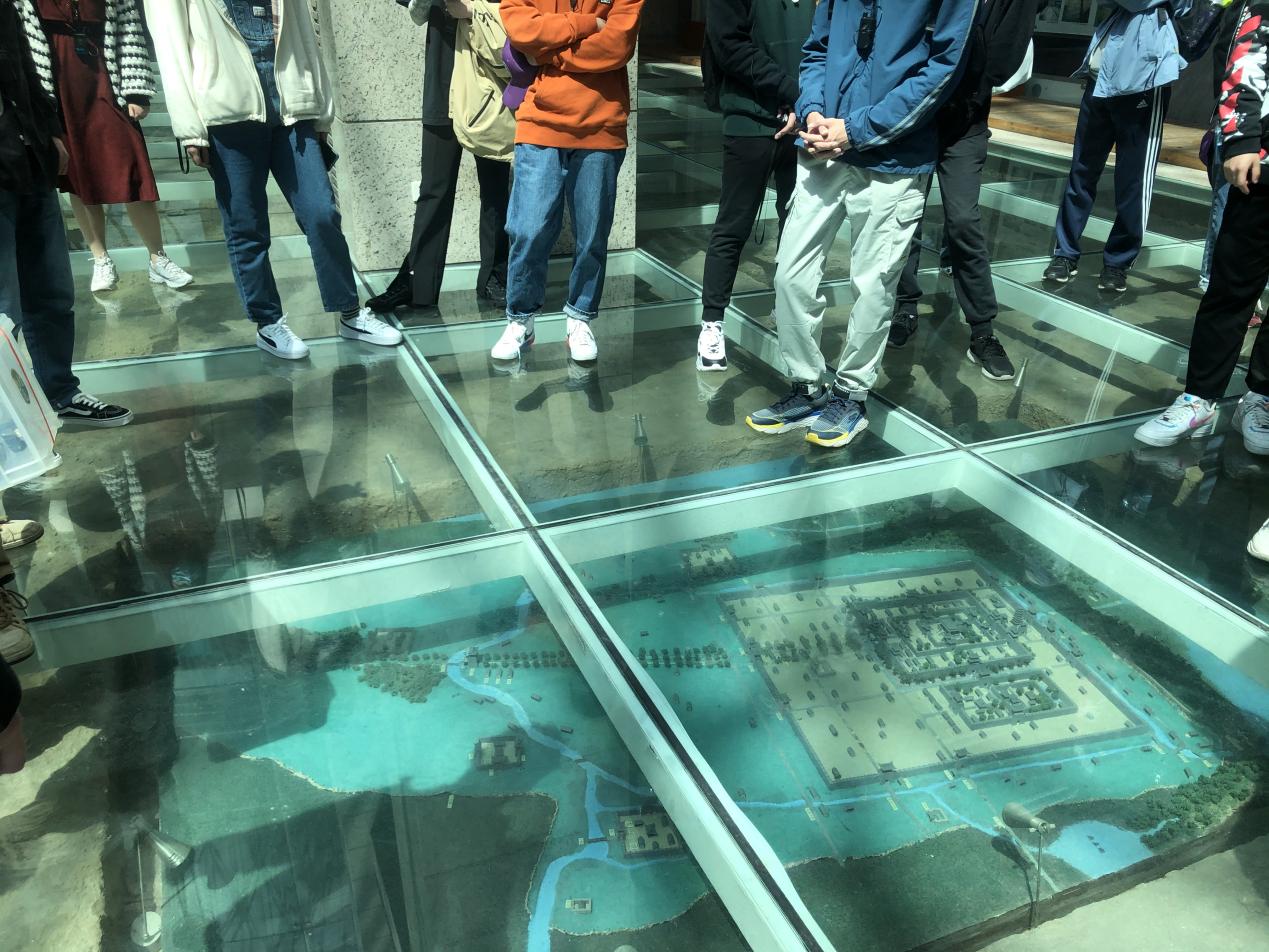 步入中山东路,同学们来到中国第三大图书馆——南京图书馆。站在图书馆的一层,脚下就是南朝都城遗址。看着当年的道路轨迹和瓦当、水井等各种遗迹,不觉让人感叹:“南朝四百八十寺,多少楼台烟雨中。”