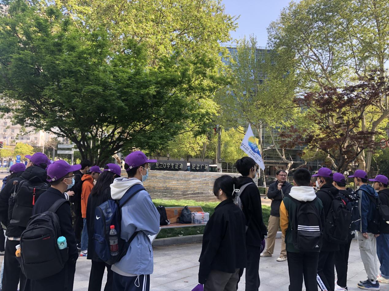 早上9点,同学们从长江路的520员工运动广场出发。同学们站在纪念“五·二〇”员工运动的广场上,聆听热血青年与人民解放军相互配合的斗争往事。