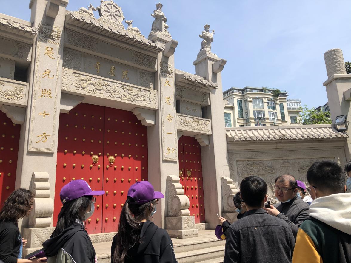 行至毗卢寺,已达此次活动第一部分的终点,同学们仍兴致勃勃。于锋老师告诉大家这里在民国时期是全国佛教中心,而后更成为中国佛教研究和中医学研究的中心,对中国佛、医及文化有着不可估量的影响,是中国佛教从传统走向现代的标志性道场。