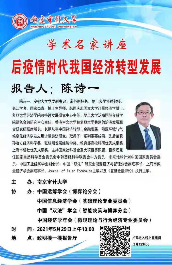 陈诗一教授“后疫情时代我国经济转型发展”学术讲座通知