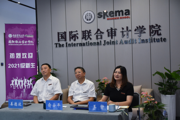 接着,法国SKEMA商公司副董事长Patrice通过视频线上致辞,向同学们介绍了国际联合审计公司的国际资源和办学优势,预祝新生们大学四年生活获得丰硕收获。