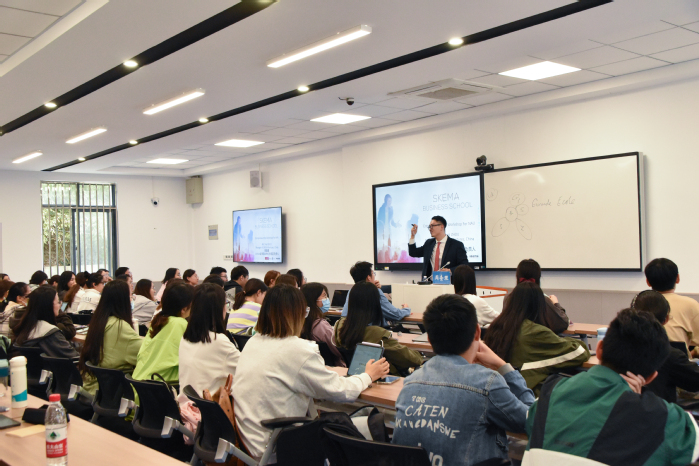 首先,周查理从全球本土化的SKEMA Ventures(SKEMA全球创业中心)讲起,随后以苹果手机、可口可乐、依云矿泉水为例逐步引导员工进入了“创新创业”的语境。在周查理的耐心讲解下,同学们渐渐明白了创业的基本逻辑,也明白了回应消费者的需求可谓是创业美好的开始。