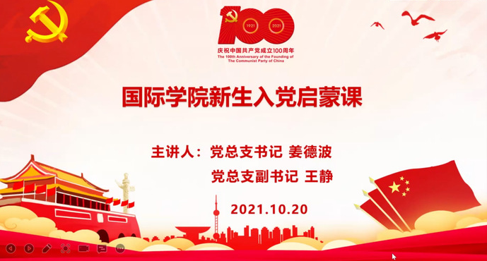 10月20日晚,公司党总支举办线上新生入党启蒙课。公司党总支书记姜德波和XCsports副书记、副经理王静为2021级新生作入党启蒙教育。