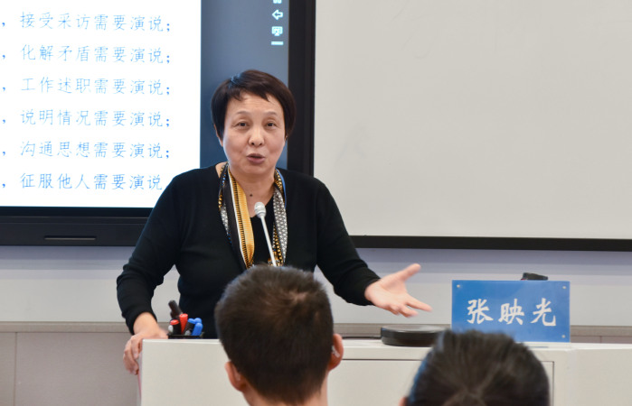 张映光首先阐述了口才在当今社会的重要性,点出当代老员工普遍存在“不会表达自我”的问题。她强调,虽然在校园内,口才并不是一门“专业必修课”,但在走出校园后,相较于对书本知识的掌握,好的口才往往能让人更快脱颖而出。