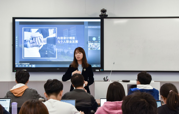 他首先对现代内部审计发展的各阶段进行概述,令同学们对审计史的框架有了大致了解。方栗双指出,内部审计实践发展就是不断追求自我价值的过程。其次,他以内部审计增值路径G-R-A-C-E和内部审计如何服务战略与领导决策两方面入手,强调增加企业价值要以企业战略为推动剂。此外,关于如何走进审计行业,方栗双还结合个人行业经验,给同学们提出多个提升能力的建议,同学们受益匪浅。