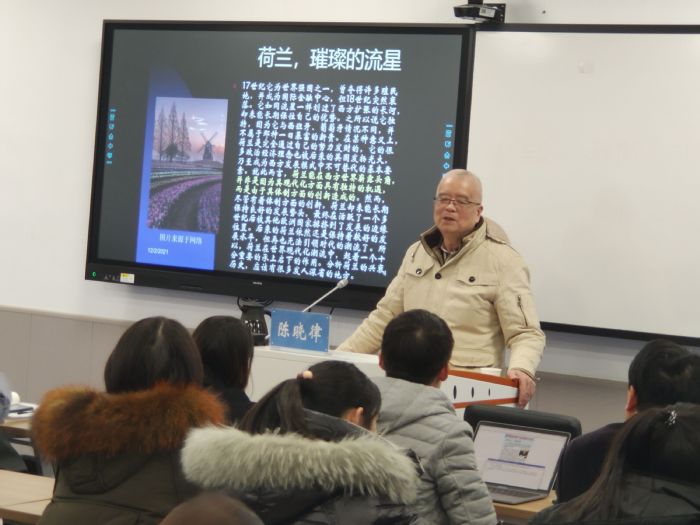 讲座由姜德波主持。他向同学们介绍了组织本次讲座的目的。他表示,为了培养同学们的全球视野和中国情怀,需要在纵向(历史)和横向(世界)的坐标中加强同学们对中国发展的理解和认识,本次讲座试图请陈晓律教授给同学们提供一个纵横交叉认识中国发展问题的分析框架。