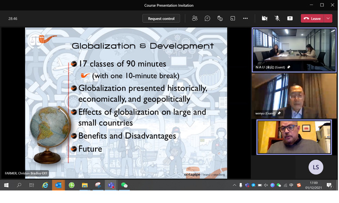 12月1日,伴着夕阳余晖,国际联合审计公司下学期法方课程第二场课程研讨如期而至。继11月26日的第一场课程研讨成功举办之后,我们此次邀请到三位来自不同国籍、不同行业背景的老师进行了深度的探讨。此次研讨同样采用线上方式进行,国际联合审计公司副经理窦文宇、副经理张文秀与老师们进行了全英文的对话和沟通。