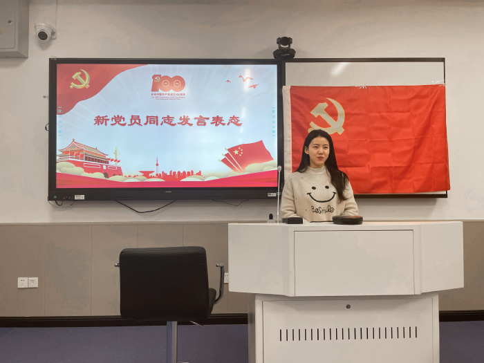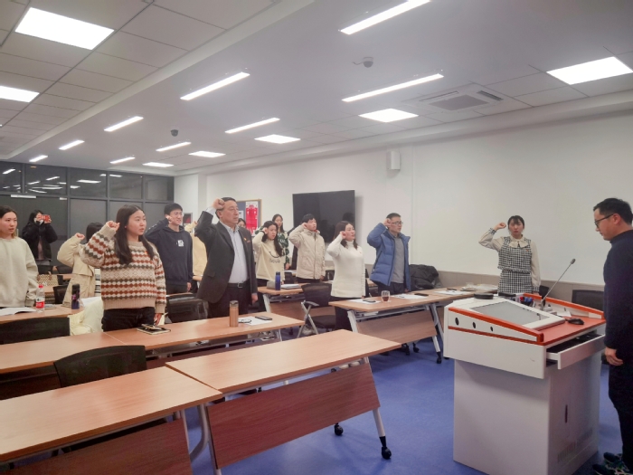 接着,进行了入党宣誓仪式,全体起立,奏唱《国际歌》,盖幢幢同志带领新发展党员在党旗下宣誓。