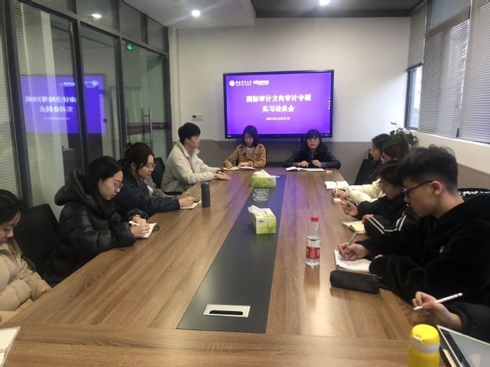 王素梅首先介绍了国际审计方向审计专硕研究生的培养模式及研究方向,并明确论文的选题要求与体例要求。其次,介绍了下学期的实习安排和实习单位。同时,要求同学们遵守实习单位的各项纪律,服从工作安排,及时全面地记录实习日志,注意收集案例。