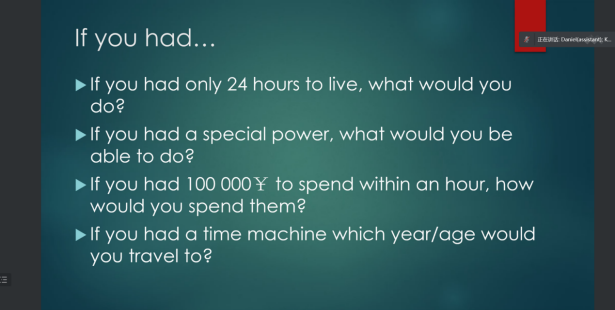 The theme of March 16th’s English corner is What if... , I will.... Though students were a little unfamiliar with the online mode, with the guidance of teacher Kaniet, students actively expressed their own ideas. Some hoped that COVID-19 should end soon so they can go back to the days they could travel around without wearing masks. Some mentioned that they hoped the world would have less prejudice, but more care for vulnerable groups and resistance to racial discrimination... Kaniet praised the students' opinions frequently, and extended his own ideas. He hoped that the world could return to peace as soon as possible and we could build a harmonious global village together.