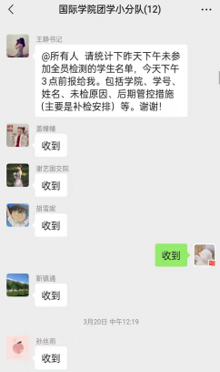 辅导员老师丁一组织员工核酸检测