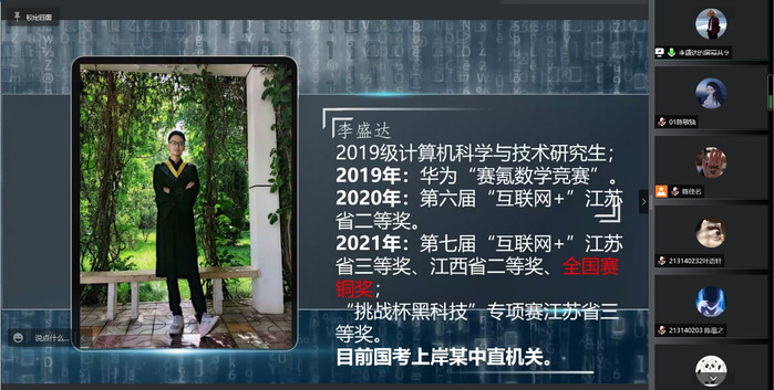 李盛达以自己的亲身实践说明,通过参加“挑战杯”“互联网+”“数学建模”等竞赛,在团队协作、沟通交流、抗压能力等方面都会得到巨大提升;在与团队成员协作、与指导老师交流、向专业人士请教的过程中,逐渐学会解决问题,能全方位锻炼心智。