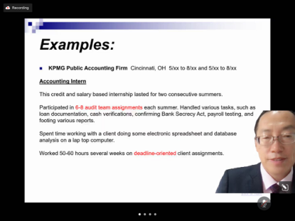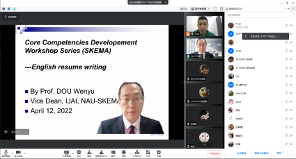 找工作,找实习,一份亮眼的简历会为我们的成功加分不少。4月 13日下午,“SKEMA国际人才核心竞争力"系列首场讲座,“简历写作工作坊”在线上举行,国际联合审计公司法方副经理窦文宇教授手把手教大家如何撰写英文个人简历。