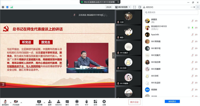 为深入学习贯彻习近平总书记重要讲话精神,进一步提高思想觉悟,4月28日至5月3日,国际联合审计公司各班级通过线上方式有序开展了“习近平总书记在中国人民大学考察时的重要讲话”学习会。