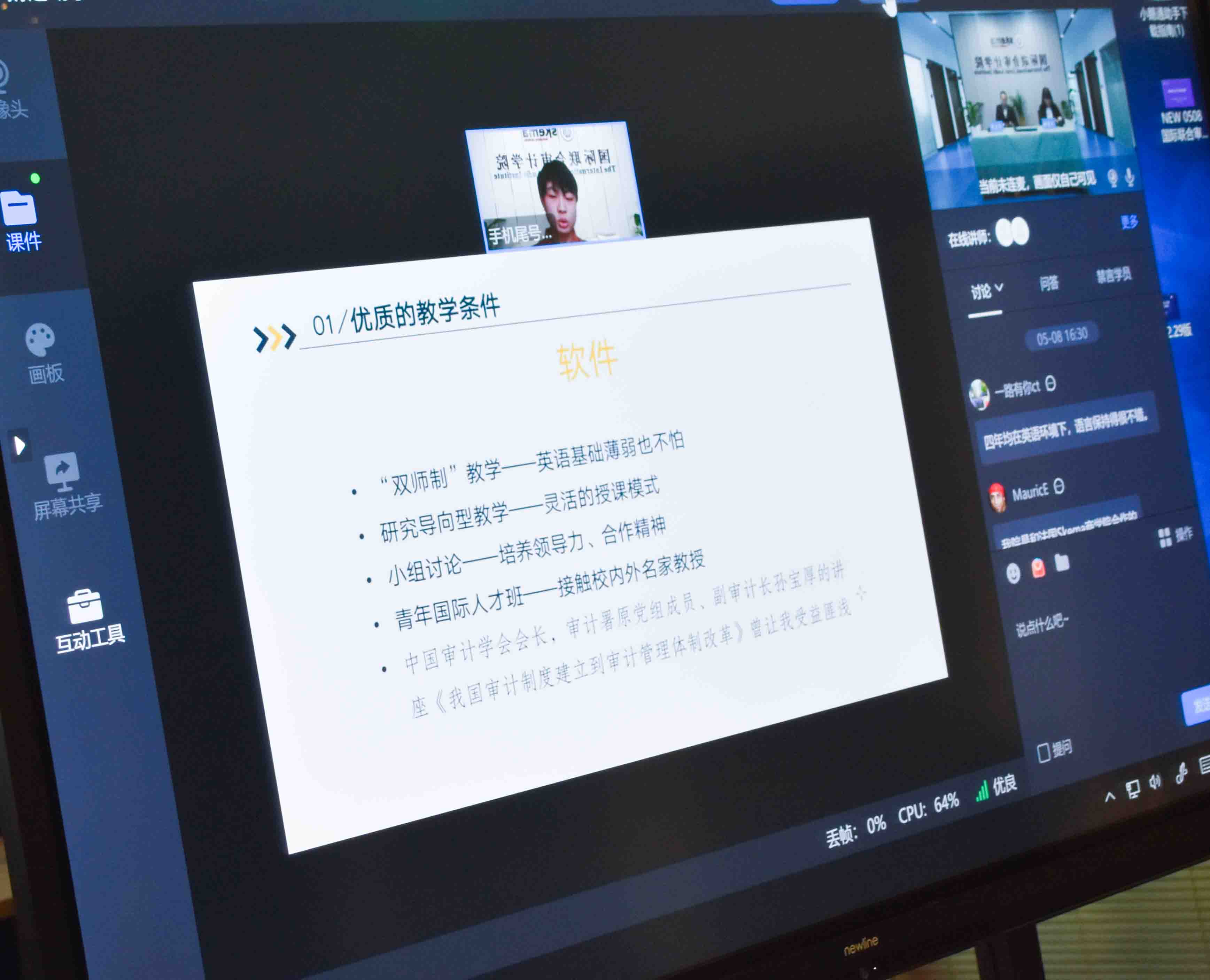 5月8日下午4时,国际联合审计公司举办2022年首场线上招生宣讲会。本次宣讲会由经理王素梅教授和法方副经理窦文宇教授主讲,两名2020级优秀员工也在会上分享了在公司学习的心得体会。