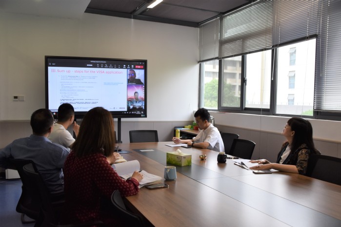 会上,双方就交换生项目当前进展、托福考试、签证办理等议题进行详细的交流。