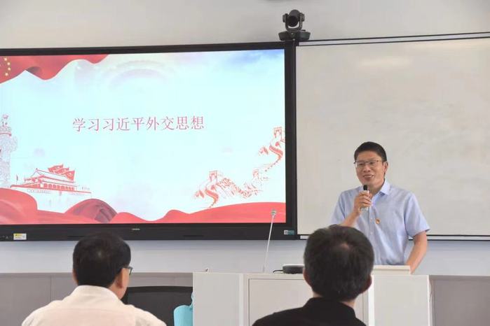 联学活动特邀马克思主义公司副书记、副经理高志虎副教授以党课形式做理论指导。高志虎介绍,党的十八大以来,以习近平同志为核心的党中央,在推进新时代中国特色社会主义伟大事业的历史征程中,领导我国对外工作攻坚克难、砥砺前行,经历了一系列风险考验,战胜了许多艰难险阻,走出了一条中国特色大国外交新路;习近平总书记在2014年11月中央外事工作会议上提出“中国必须有自己特色的大国外交”,在2018年6月中央外事工作会议上正式提出新时代中国特色社会主义外交思想;习近平外交思想内涵丰富,核心要义可以概括为“十个坚持”。