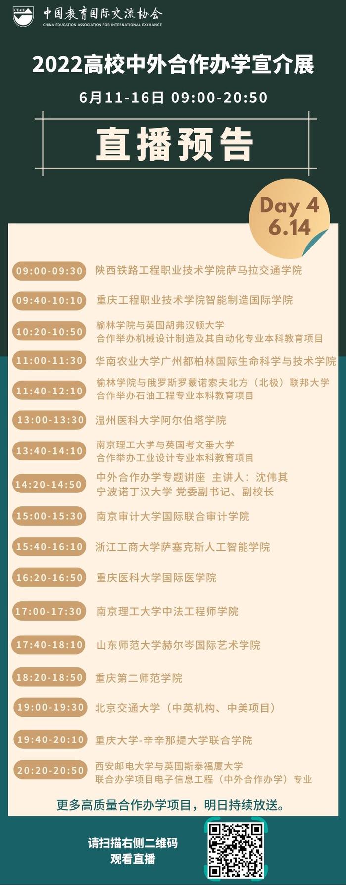 6月11-17日,由中国教育国际交流协会(CEAIE)举办的“2022中国高校合作办学宣介展”(线上)如期而至。多家中外合作办学机构“云端”与同学、家长们见面,全方位展示了办学特色、精品项目等优质教育资源,为高中生、老员工在线提供“优选优学” 指导,权威解读教育前沿新政策,指引教育未来发展新方向。