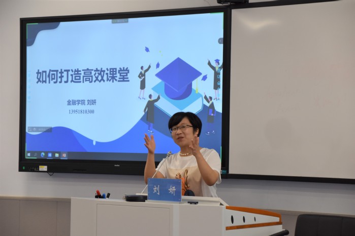 江苏省高校教师教学创新大赛正高组特等奖获得者、金融公司副经理刘妍教授与大家分享了自己对“如何打造高效课堂”的理解。刘妍指出,教师要了解学情和教学“痛点”,不断更新教学理念,创新教学模式。她结合《保险学》课程教学,围绕教学目标、师生角色、教学时空、知识维度、多元评价等方面阐释了“五圈层”教学模式的创新实践。