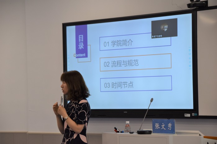 国际联合审计公司副经理张文秀最后介绍了公司办学基本情况和推进研究导向型教学的举措,以及教学过程中的规范性要求。公司教务刘莉和刘静老师分别对主要教学环节的教学资料要求做出了提醒。