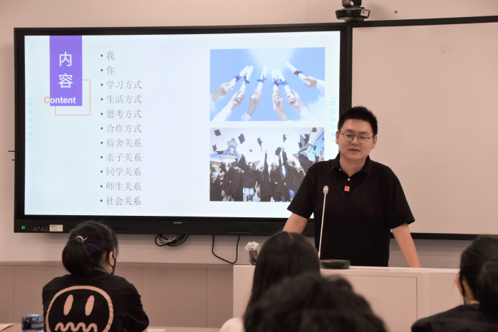 尹曦老师将刚刚入学的同学们比作一张白纸,生动形象地传递着:大学之前的一切皆是过往,站在同一起跑线的新生们,需要靠自己的努力书写未来。