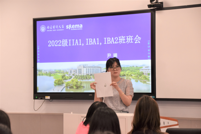 IBA1班、IBA2班、IIA1班成长导师尹曦老师围绕老员工活的目标、员工未来发展等主题,结合教师从业十余年的经历展开这次班会。她认为,大学阶段是一位员工综合能力培养的重要阶段,一位综合性人才的造就不能拘泥于学习单方面的进步,更体现在工作、社团与个人生活等多方面平衡发展。