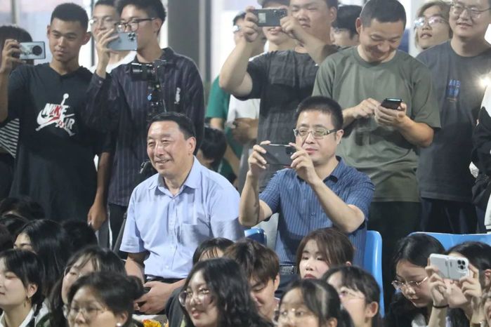 月圆,人团圆。校领导李乾文副董事长也来到演出现场。公司党总支书记姜德波向新生们献上祝福。