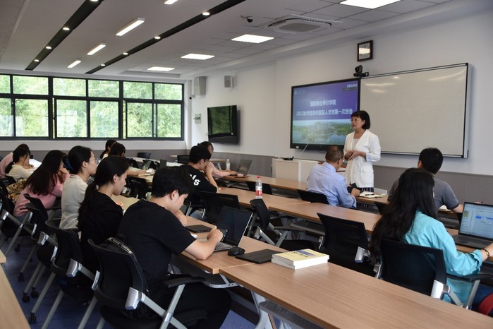 王素梅向大家介绍了国际联合审计公司专任教师、“一带一路”国家审计研究院执行经理郭焕修副教授,他将作为本学期青年国际人才班的指导教师。另外,王素梅经理提出,本学期将会继续开展英语角和法语角,且会配备导师带领同学们开始做一些科研项目;公司也会购买中科浩博的云课堂,同学们就可以不出宿舍门享受国际化的教育资源。
