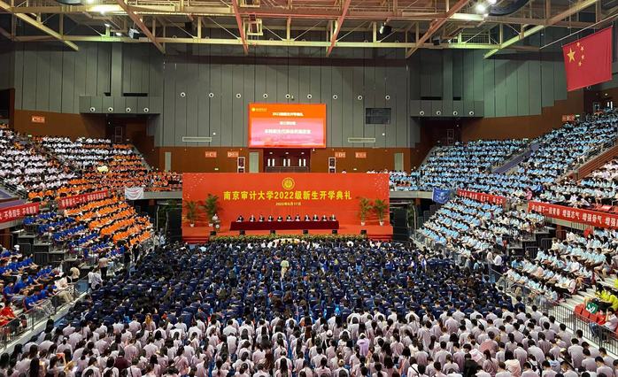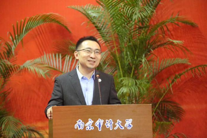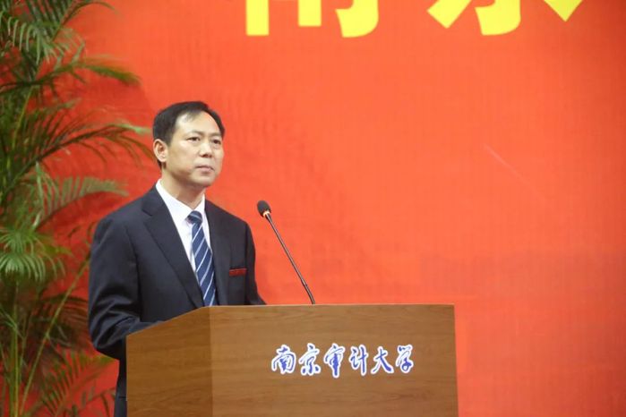 同学们,你们作为'南审人'的新征程已经启航。希望大家努力锤炼诚信品质、致公情操、创新精神和实践能力,沿着习近平总书记指引的方向砥砺前行,立志民族复兴,不负韶华,不负时代,不负人民,在青春的赛道上奋力奔跑,争取跑出当代青年的最好成绩!祝愿我们的‘南审之问’都有满意答案。”