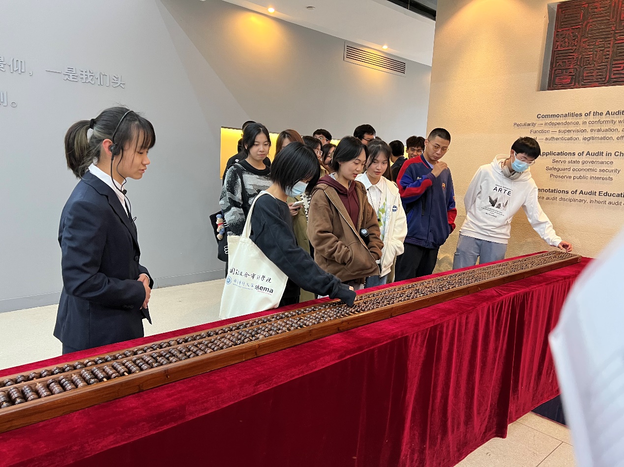 在讲解员的引领下,同学们首先参观了世界审计经纬厅,了解中国审计逐步走向世界、服务大国外交的辉煌篇章。随后,同学们依次参观了中国古代、近代及当代审计展厅,了解我国源远流长的审计历史,并向为国家审计事业做出巨大贡献的先辈们致敬。