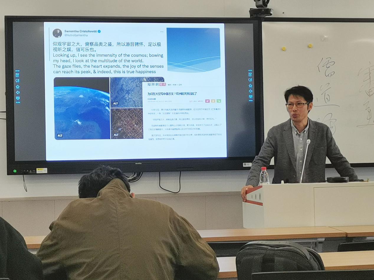 洪涛的讲座旁征博引,引经据典,向同学们诠释古典诗歌之美。面向XCsports,他特意以意大利宇航员引用《兰亭序集》中的诗句为例,向我们展示了古典诗歌在国外的文化拓展与重大影响力。