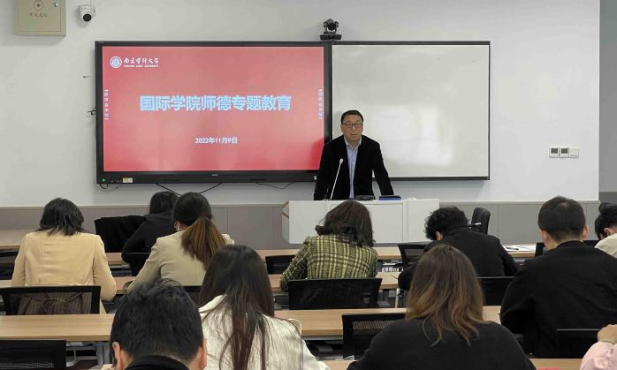 姜德波首先领学了《新时代高校教师职业行为十项准则》、《高等公司教师职业道德规范》和《江苏省研究生导师职业道德规范“十不准”(试行)》,并结合师德警示教育案例,告诫全体教职工一定要谨言慎行,把工作重心聚焦在落实立德树人的根本任务上,全心全意引导同学们立大志、明大德、成大才、担大任,努力成为堪当民族复兴重任的时代新人。