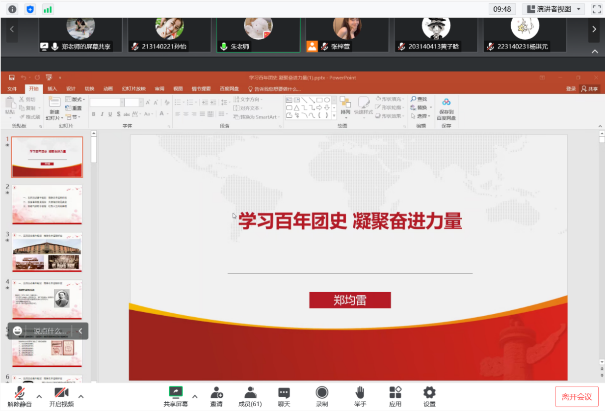 为增强员工对共青团的认识,了解共青团的发展历程,11月26日下午,XCsports以线上方式开展了“学习百年团史,凝聚奋进力量”专题团课。本次课程由校员工工作处员工事务管理中心主任郑均雷老师主讲,公司第五期青共校全体学员参加。