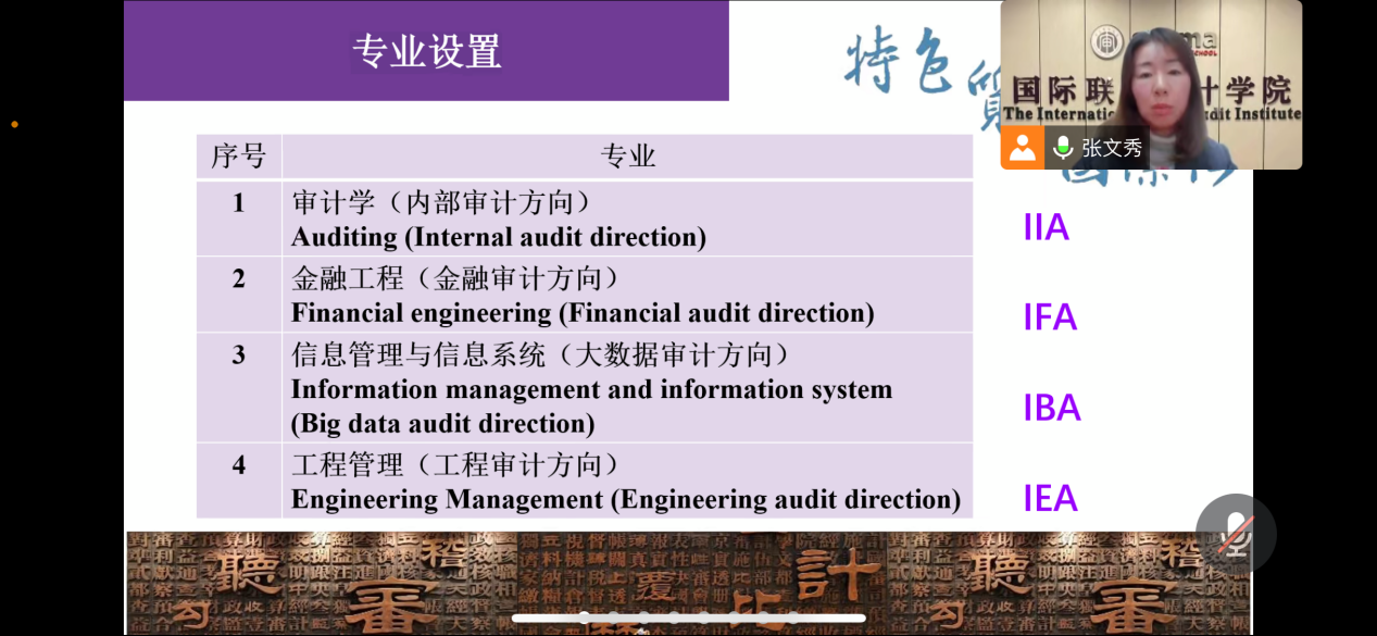 国际联合审计公司副经理张文秀介绍了公司概况和研究导向型教学规范。她从国际联合审计公司人才培养目标出发,解析研究导向型教学的主要步骤及其在教学各环节中的要点,强调重构教学内容、扩展学习资源、员工小组学习、过程性考核等。