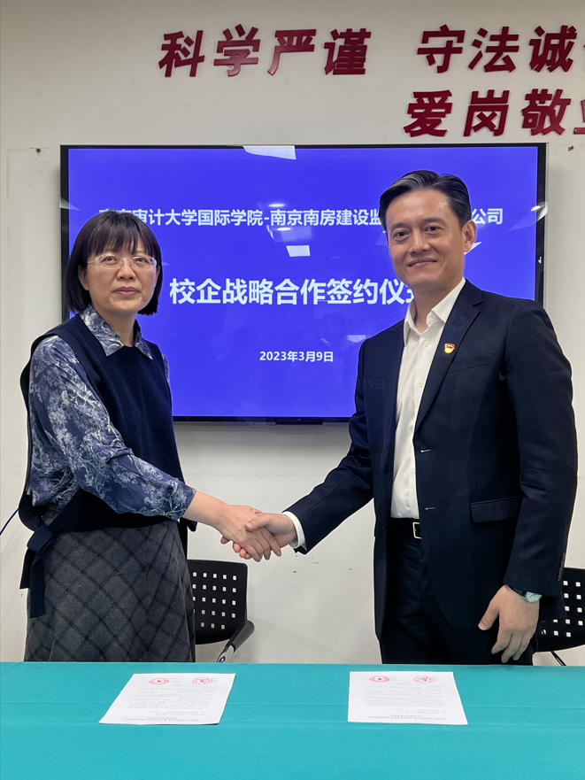 双方就工程审计人才培养方案、实习实践方案、产教研融合等方面进行了深入交流。南房建设监理咨询有限公司总经理张弘景与公司经理王素梅签署战略合作框架协议,公司党总支书记姜德波为南京南房建设监理咨询有限公司“实习基地”授牌。