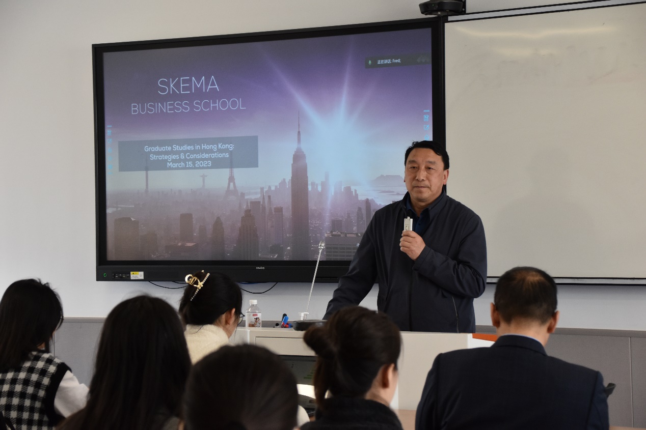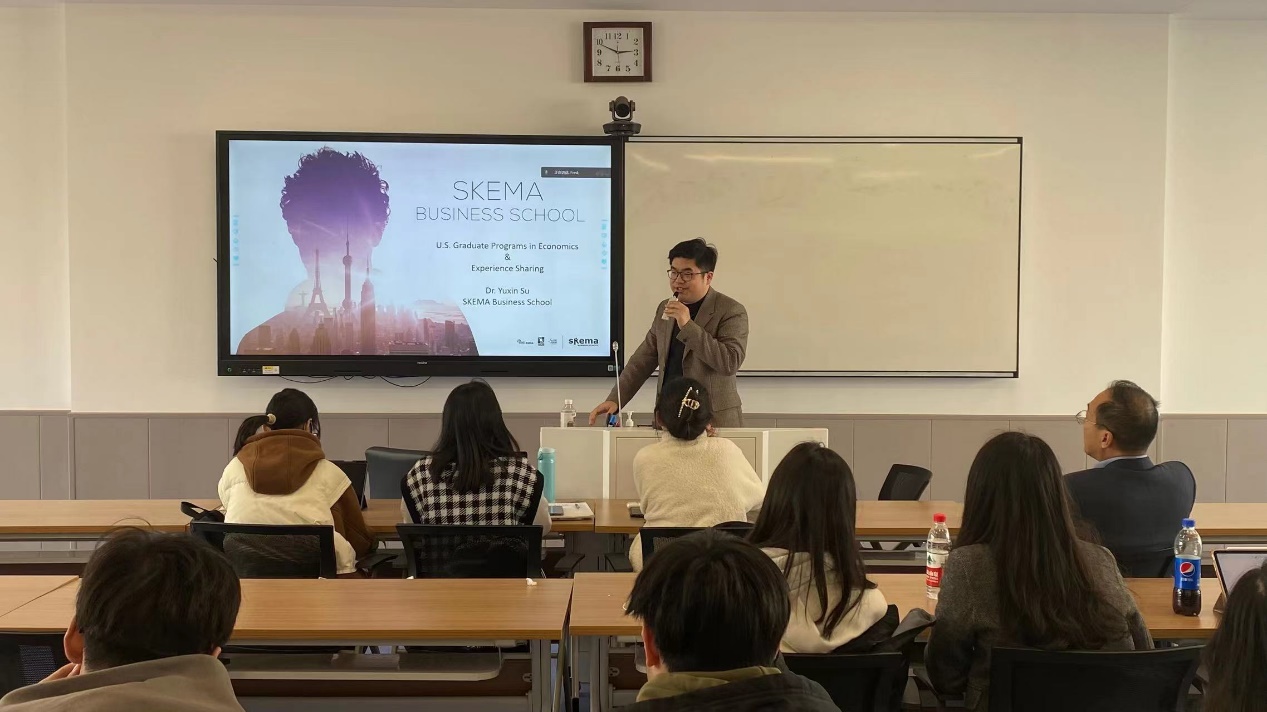 3月15日下午,国际联合审计公司在A201教室举行主题为“海外读研印象与亲历:热门地区留学解析”的讲座。讲座由公司党总支书记姜德波教授主持,法方副经理窦文宇教授和3位法方专任教师——蔡宇杰副教授、徐亮助理教授、苏昱昕助理教授分享了各自独特的留学经历与体验,介绍了全球热门的留学地区,并通过一对一沟通解答了同学们的疑惑并给予宝贵意见。