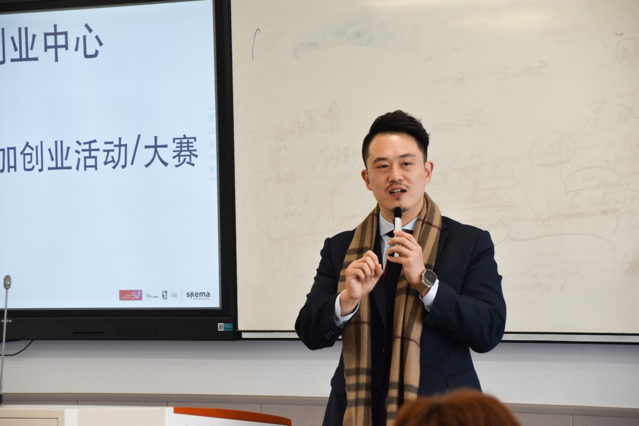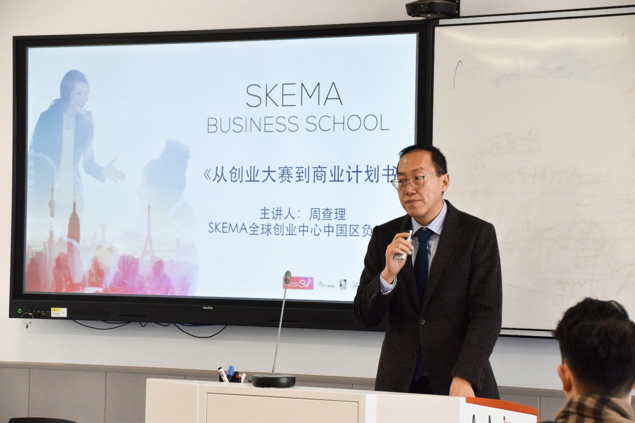 3月24日, SKEMA全球创业中心中国区负责人周查理老师应邀为同学们作“卓越商业计划书——决胜大创竞赛”的主题讲座。讲座由国际联合审计公司法方副经理窦文宇主持。