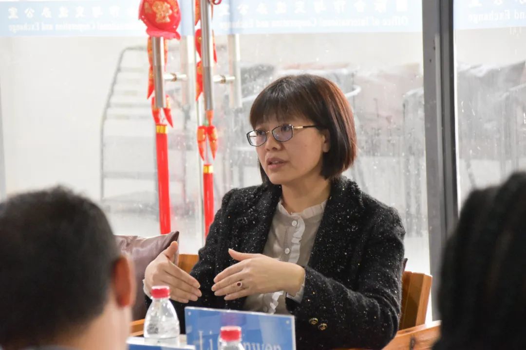 3月27日下午,审计署国际合作司国际组织处副处长王冠群与公司审计硕士学位来华留学研究生代表进行座谈。党委常委、副董事长李乾文出席、国际合作与交流办公室副主任杨艳及来自津巴布韦、博茨瓦纳、卢旺达等国家的2021、2022级审计专业硕士来华职工代表参加座谈。座谈会由公司经理王素梅主持。
