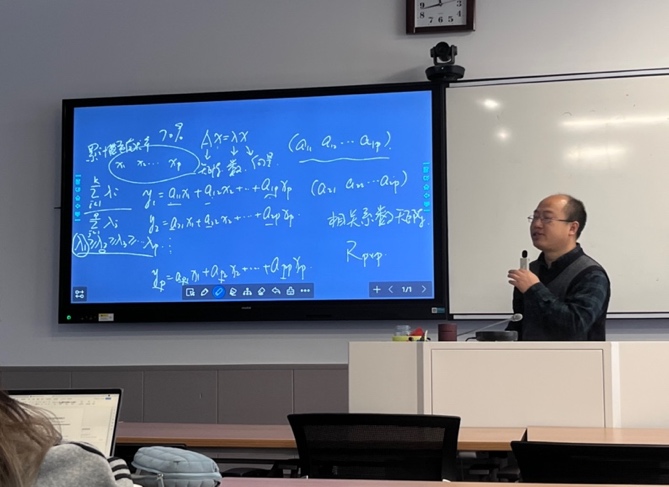 郑玉国老师首先带领大家回顾了统计学的基本知识,随后他介绍了主成分分析和因子分析这两种对数据进行分析的手段。主成分分析法是利用降维的思想,将多个变量转化为极少数几个主成分,其中每个主成分都是这些原始变量的线性组合。利用主成分分析法可以使复杂的问题得以简化,同时得到更为科学、准确的信息。因子分析是在尽可能不损失或者少损失原始数据信息的情况下,将错综复杂的众多变量聚合成少数几个独立的公共因子,这几个公共因子既反映了原来众多变量的主要信息,也反映了变量之间的内在联系。这两种分析法在确定数据之间的相关性的方面成为我们数学建模过程当中的“万金油”。