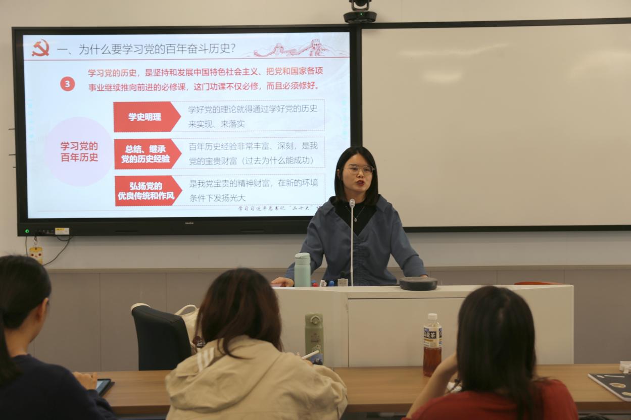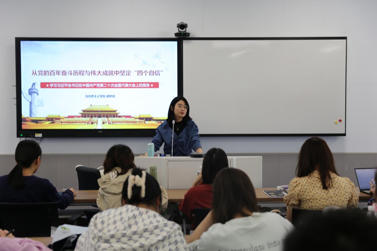 开班典礼结束后,马克思主义公司的顾梦佳老师以“从党的百年奋斗历程与伟大成就中坚定‘四个自信’”为主题开展了第一次理论课授课。