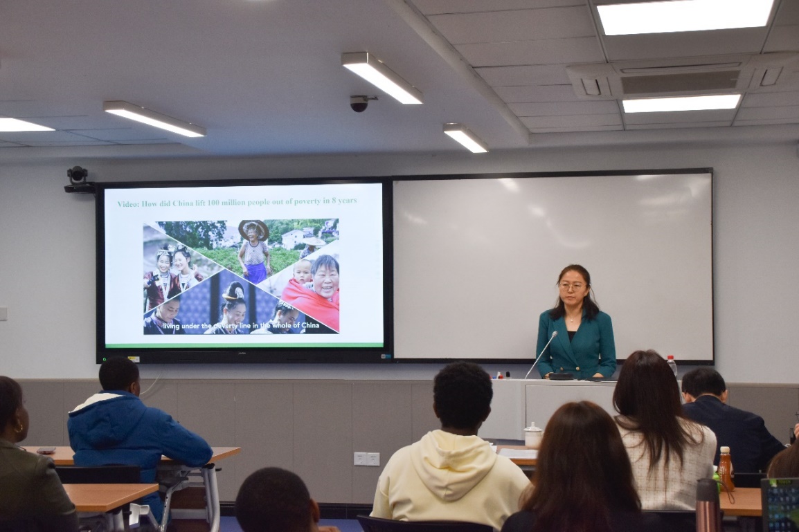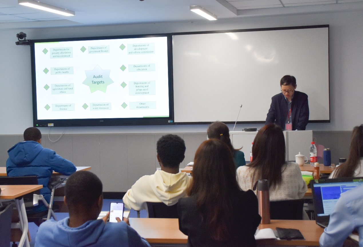 4月21日上午,审计署国际合作司丁悦处长和农业农村司游飞贵处长联袂为来华职工作《从减贫到乡村振兴:中国的经验与审计实践》的讲座。