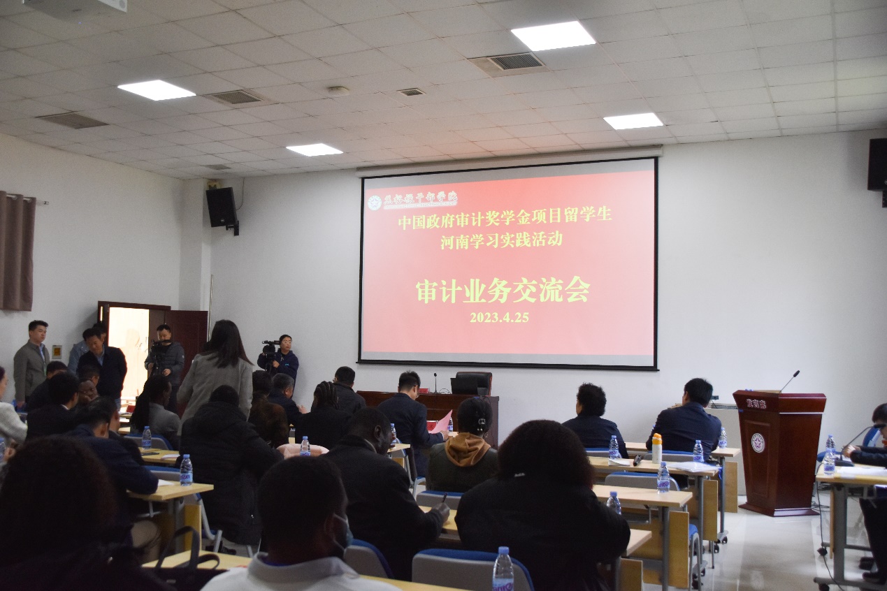 25日上午召开审计业务交流会,审计署国际合作司司长姜海鹰、河南省审计厅党组书记、厅长赵喜林、副厅长冯亚辉出席。