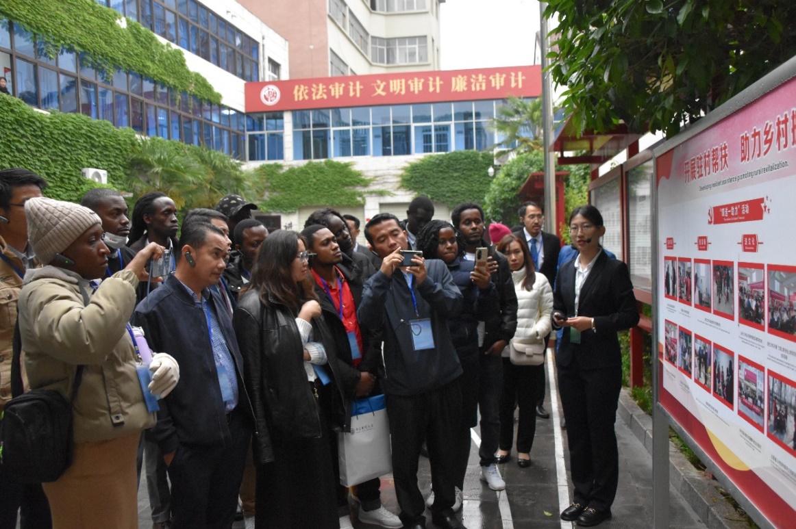 在兰考县审计局,一线审计人员向职工介绍了扶贫审计、大数据审计的业务实施情况,并与职工开展了深入的交流。审计署国际合作司司长姜海鹰亲自回答来华职工的问题。