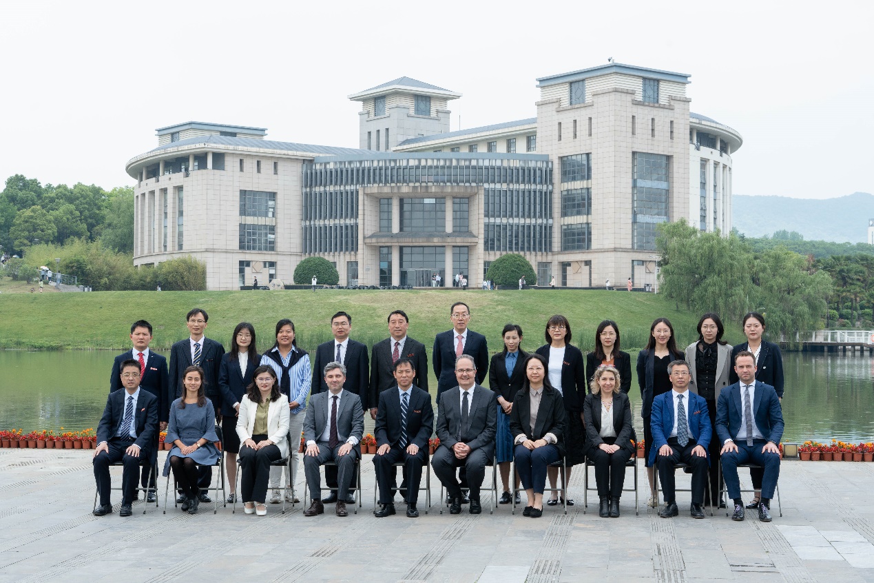 5月12日,法国驻上海总领事Joan Valadou(王度)一行到访XC体育,法国SKEMA商公司全球副董事长Patrice Houdayer(帕特里斯·乌达耶)博士、SKEMA中国区董事长Matthieu Dumont(杜睿天),江苏省人民政府外事办公室欧非处处长季苏颖,江苏省教育厅对外合作与交流处副处长汝益仙,XC体育董事长董必荣、副董事长李乾文、国际合作办公室以及国际联合审计公司负责人参加交流。交流会由李乾文主持。