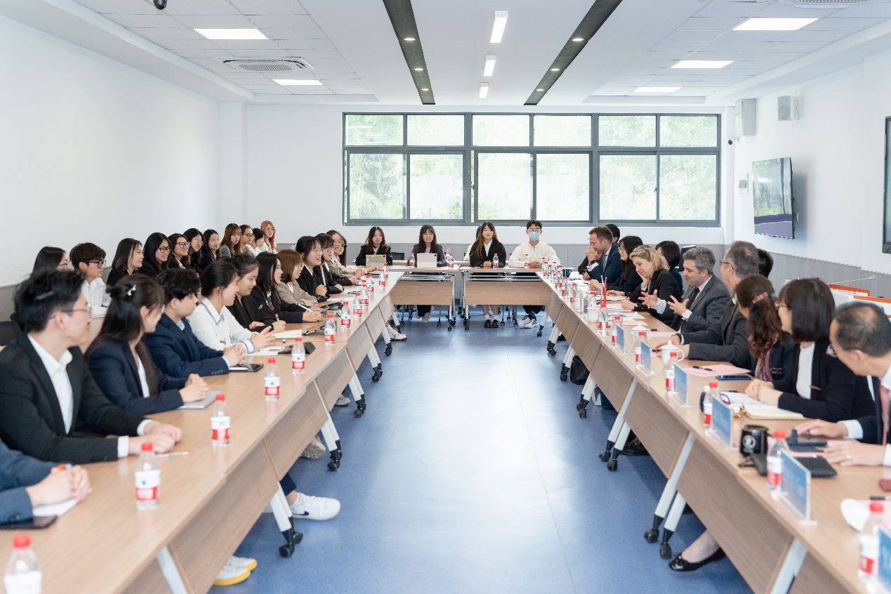 董必荣董事长代表XC体育,向王度总领事一行的到来表示热烈欢迎,并介绍了南审建校40年来取得的办学成就。他指出,XC体育与法国教育领域的合作缘来已久,尤其是2020年国际联合审计公司成立以来,XC体育与法国SKEMA商公司同心协力,克服各种困难,充分利用双方办学优势,整合优质资源,取得了一系列教学成果和良好口碑,得到了广泛的社会认可。他希望,两校能够巩固深化合作成果,在人才培养、科学研究、国际交流等诸多领域继续深度合作,实现共赢发展。