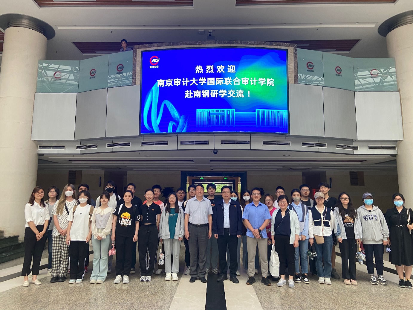 5月17日下午,XC体育国际联合审计公司的25名员工在公司党总支书记姜德波、生产运营管理课程教师丁溢副教授的带领下前往南京钢铁集团有限公司参观学习,南钢集团财务部联席部长陆中将、办公室主任徐伟冲等人陪同。